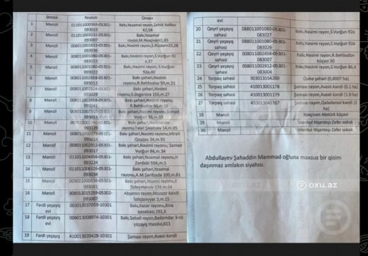 Oğlunun, xüsusən qızının və həyat yoldaşının, qanunsuz qızının, nəvələrinin adına olanlardan hələ danışmırıq. Bu gün onun nəticəsidir ki, Şahəddin Abdullayevin dövlət orqanlarında dayaqları və himayədarları qalmaqda davam edir. İki ilə yaxındır ki, etdiyimiz müraciətlərdə Şahəddin Abdullayevin təsisçisi olduğu və oğlu Şamxal Abdullayevin direktor olduğu "Güzdək Metal" və "Roofs" MMC-də Vergi Məcəlləsinin 38.2-ci maddəsinin tələblərini pozaraq, dövlət büdcəsindən külli miqdarda mənimsəmələr edilməsinə dair göstərdiyimiz faktlar bu günə qədər araşdırılmayaraq açıq qalıb. Bunun nəticəsidir ki, hər 2 müəssisənin rəhbərləri uzun müddətdir ki, "qara mühasibatlıqla" işləyərək dövlət büdcəsindən milyonlarla manat mənimsəmələr etmələrinə baxmayaraq, əl-qollarını sallayaraq sərbəst gəzib dolaşırlar".