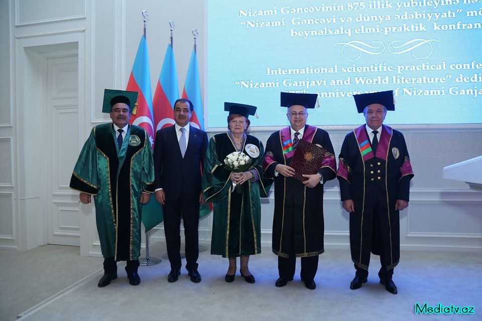 Mediatv.az xəbər verir ki, Gəncədə “Nizami və dünya ədəbiyyatı” mövzusunda keçirilən beynəlxalq elmi-praktik konfransın yekununda Azərbaycan Dövlət Aqrar Universitetinin rektoru, AMEA-nın müxbir üzvü, professor İbrahim Cəfərov Latviya Respublikasının sabiq Prezidenti, Nizami Gəncəvi Beynəlxalq Mərkəzinin həmsədri xanım Vayra Vike Freyberqaya Azərbaycan Dövlət Aqrar Universitetinin “Fəxri Doktoru “adının verilməsi ilə əlaqədar universitet Elmi Şurasının qərarını oxuyub, bu münasibətlə diplom və mantiya təqdim edib.