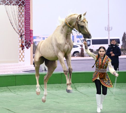 Heydər Əliyev Fondunun vitse-prezidenti Leyla Əliyeva Türkmənistana səfəri çərçivəsində dekabrın 9-da Türkmənbaşı şəhərində “Galkynysh” Milli At Oyunları Qrupunun təqdimatını izləyib və Türkmənistan milli mətbəxinə həsr olunan sərgidə iştirak edib.Mediatv.az xəbər verir ki, Türkmənistanın qədim atçılıq ənənələrini, milli mədəniyyətini və folklorunu qoruyan “Galkynysh” Milli At Oyunları Qrupu çıxışı zamanı qonaqlara zəngin mədəni irsi nümayiş etdirib.