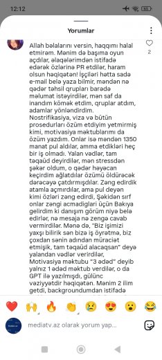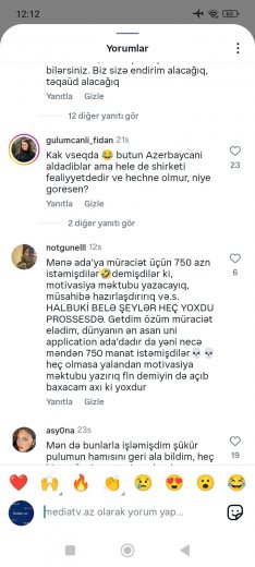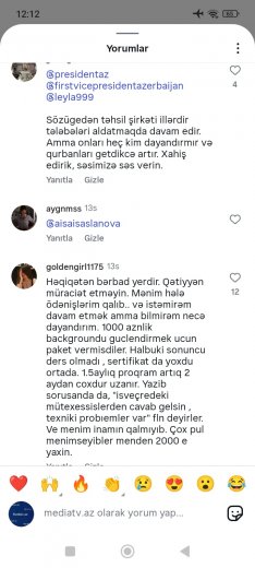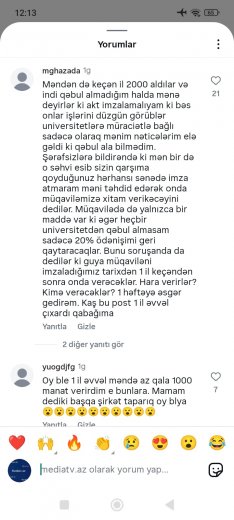 Bir neçə gün Mediatv.az xəbər portalında Tribunainfo.az-a istinadən Xaricdə təhsil vədi verən “Pilgrim Education” ailələri aldatmağa davam edir(https://mediatv.az/karusel/128624-xaricde-tehsil-vedi-veren-pilgrim-education-aileleri-aldatmaga-davam-edir.html) sərlövhəli məqalə dərc etmişdik və bu məqaləni Mediatv.az xəbər portalının instagram səhifəsində paylaşmışdıq.Qısa bir vaxtda Mediatv.az xəbər portalının instagram səhifəsin 71 mindən artıq baxış gəlmiş,şərh bölümündə isə 160-dan artıq fikir bildirilmişdir.Əksər izləyicilərimiz “Pilgrim Education” şirkətinin rəhbəri Aisa Aslanova tərəfindən aldanıldıqlarını və pullarının geri qaytarılmamısdan şikayətlənirlər.Onlar Aisa Aslanovanın kimlərsə tərəfindən himayə olunduğunu, ölkə prezidenti İlham Əliyevdən və Birinci vitse-prezident Mehriban Əliyevadan bu qanunazidd fəaliyyətin qarşısının alınması üçün zəruri tədbirlərin görülməsini ,onlara dəymiş maddi ziyanın geri qaytarılması üçün aidiyyatı qurumlara göstəriş verilməsini xahiş edirlər.