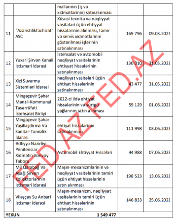Sözügedən şirkət 2021-ci ildən indiyə kimi iştirak etdiyi dövlət tenderlərində 1 milyon 549 min 477 manatlıq sifariş qazanıb. Şirkət bu sifarişləri cəmi 18 tenderlə əldə edib – bir tenderin orta qiyməti 86 min manatdır.