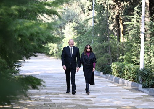 Prezident İlham Əliyev və birinci xanım Mehriban Əliyeva Vətən müharibəsində Qələbənin beşinci ildönümü münasibətilə Fəxri xiyabanda Ümummilli Lider Heydər Əliyevin məzarını ziyarət ediblər.Mediatv.az xəbər verir ki, Prezident İlham Əliyev Ulu Öndərin məzarı önünə əklil qoyaraq xatirəsini ehtiramla anıb.Sonra birinci xanım Mehriban Əliyeva Ümummilli Liderin xatirəsini yad edib.