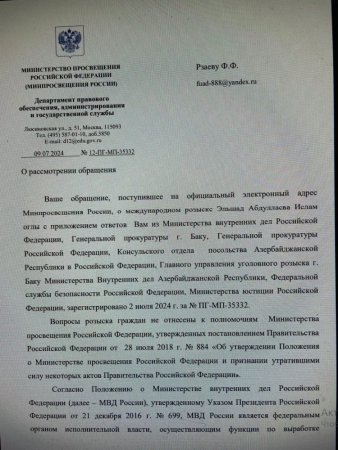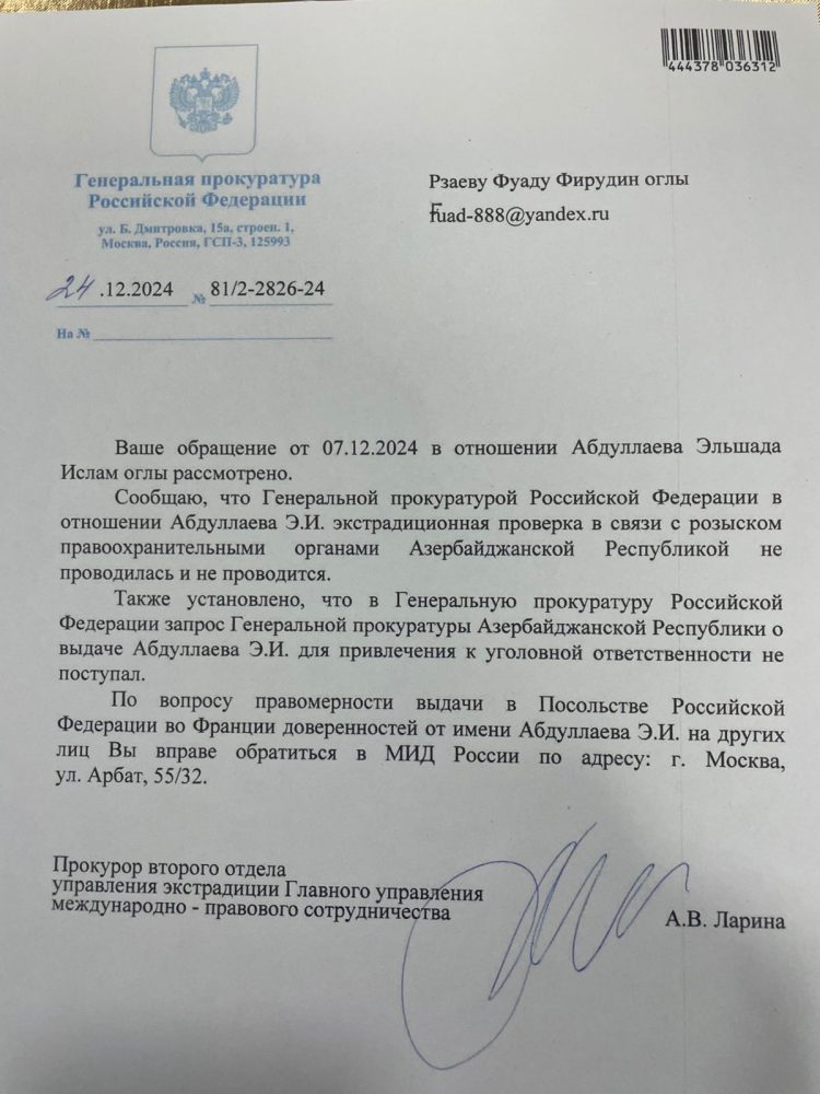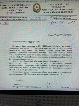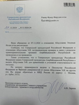 Bunun müqabilində Rusiya Prezidenti Vladimir Putin E. Abdullayevə öz təşəkkürünü bildirib və ona saat bağışlayıb. Görünən odur ki, Azərbaycana qarşı heç də xoş olmayan Rusiya münasibətlərində maraqlı tərəflər lazımı istifadə metodundan yaralanır. Əvvəla, sabiq rektor interpol xətti ilə axtarışdadır və onun həbs edib Azərbaycana təhvil verilməsi istiqamətində addımlar atılmalıdır. Lakin başda Rusiya olmaqla bəzi ölkələr sanki E. Abdullayevin təhlükəsizliyinə öhdəlik götürüb. Sual yaranır. Əgər doğrudanda ABU-ın sabiq rektoru Beynəlxalq Axtarışdadırsa necə Rusiya və digər ölkələrin səfirliyində sərbəst hərəkət edir? Suallar kifayət qədər. Amma maraqlı məqam ondan ibarətdir ki, bu sualların cavabını kimin nəzərində tapmaq olar?