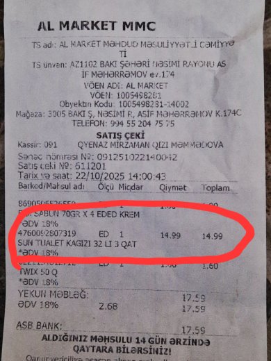 Artıq son dövrlər marketlərdə məhsulların "saxta endirim" kompaniyası bir növ ənənə halı alıb. 22.10.2025-ci il tarixdə növbəti bu cür bir halla qarşılaşmışam, belə ki, günorta saatlarında yaşadığım əraziyə yaxın, Nəsimi rayonu Asif Məhərrəmov 174 ünvanında yerləşən "Al Marketə", evdə istifadə olunan bəzi şeyləri almağa getmişdim. Elə mağazanın girişindəcə tualet kağızların endirimdə olduğunu gördükdə, ağır olmasın deyə bir bağlama həmin kağızlardan və bir iki xırda şeylər götürüb ödəniş etdim. Bu arada onu da qeyd edim ki, eynəksiz olduğumdan bank kartından nə qədər vəsait çıxıldığını və kassa çekində hansı vəsaitin olduğuna baxmadan mağazadan çıxıb evə getdim. Yalnız axşam saatlarında təkrar mağazaya qayıdıb günorta saatlarında ala bilmədiklərimin dalınca getməyə hazırlaşanda günorta etdiyim alış-veriş müqabilində birbank tətbiqindən telefonuma gələn 17.59 manat məbləği gördüm. Açığı özümə də təəccüblü gəldi və mağaza çekinə baxanda orada "endirimdə" olan tualet kağızının elanda yerləşdirildiyi kimi 11.99 manat yox, 14.99 manat olduğunu gördüm. Əlqərəz evdən çıxıb mağazaya yollandım. Artıq axşam saat 7 tamam idi. İçəri daxil olub kassaya yaxın stulda əyləşmiş xanıma əlimdəki çeki təqdim edib hələ də girişdə üzərində böyük hərflərlə "ENDİRİM SUN 11.99" qeydlər olan kağızı göstərib baş verənlərin izahı barədə sorğu etdim. Xanıma bildirdim ki, günorta bu məhsul üçün məndən, göstərildiyi kimi 11.99 yox, 14.99 qəpik vəsait alınıb. Söz ağzımdan çıxar-çıxmaz xanım yerindən durub "endirim" bildirən kağızı məhsulun üzərindən çıxara-çıxara, "bu məhsulun endirim vaxtı bitib" dedikdə, dedim xanım, əl saxlayın mən bunu çəkəcəm. Mağaza işçisi ciddi-cəhdlə məni inandırmağa çalışdı ki,məhsulun üzərindəki endirim sadəcə yaddan çıxıb qalıb. Dedim ay xanım, mən günorta saat 2 də alış-veriş etmişəm, indi saat 7 tamamdır, necə ola bilər ki, siz artıq günorta saatlarından endirimdən çıxmış məhsulu 5 saat ərzində hələ də endirimdə olduğu kimi axşam saat 7-yə kimi satışda saxlamısınız. Əlbəttə bu sadəcə özünümüdafiədən başqa bir şey deyildi və verdiyim sual cavabsız qaldı. İndi mən buradan "AL MARKET"- lər şəbəkəsinin rəhbərliyinə üz tuturam, cənablar! Bu birinci və sonuncu hal deyil, nə vaxta kimi insanları bu yalançı " endirimlə" alladacaqsınız? Bu hallara nə vaxt son qoyulacaq? Eyni zamanda İqtisadi İnkişaf Nazirliyinin Antiinhisar Siyasəti və İstehlakçıların Hüquqlarının Müdafiəsi Dövlət Xidmətinə müraciət ediərək, qeyd olunan ünvandakı mağaza barədə aidiyyəti tədbirlərin görülməsini tələb edirəm.