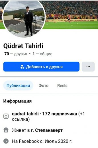 Siyəzən rayon Komunal Müəssisələri Kombinatının müvəqqəti müdir əvəzi Rasim Tahirlinin oğlu Qüdrət Tahirli özünün Facebook hesabında paylaşım edib. Tribunainfo.az xəbər verir ki, o, hazırda olduğu Xankəndi şəhərini "Stepanakert” kimi qeyd edib.Qeyd edilir ki, Qüdrət Tahirli Qarabağ Universitetinin tələbəsidir. Hazırda Xankəndi şəhərində məskunlaşıb.