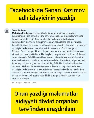 Bu əlaqələr, səsləndirilən iddialar və təyinatın arxa planı mütləq şəkildə aidiyyəti dövlət orqanları tərəfindən araşdırılmalıdır. Bu, həm dövlət idarəçiliyində şəffaflığın təmin olunması, həm də mədəniyyət sahəsinə qarşı yönəlmiş haqsızlıqların kökündə dayanan mexanizmlərin üzə çıxarılması üçün zəruridir..."
