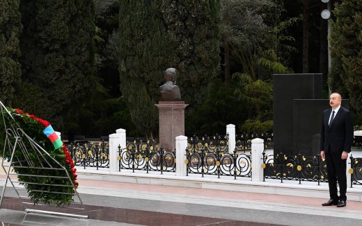 Prezident İlham Əliyev Ulu Öndərin məzarı önünə əklil qoyub.