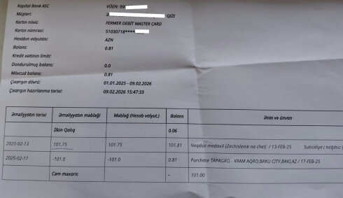 Onun redaksiyamıza təqdim etdiyi sənədlər, bank çıxarışları və konkret faktlar əsasında onun iddialarını olduğu kimi təqdim edirik: