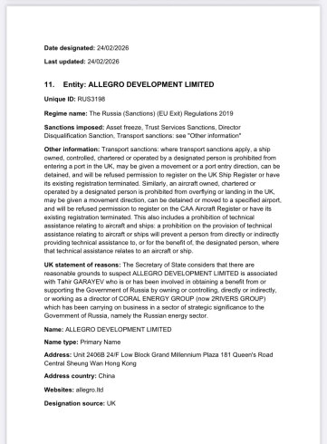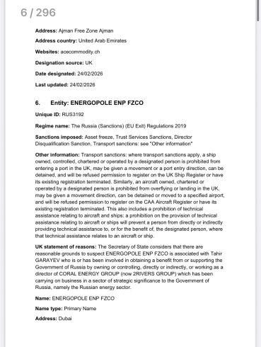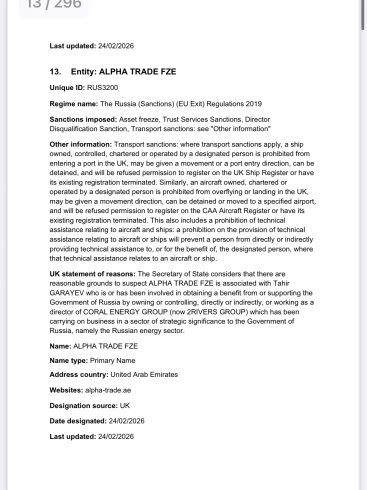 Bu şəbəkə Birləşmiş Krallıq hökuməti tərəfindən “qlobal miqyasda ən böyük kölgə donanması operatorlarından biri və Rusiya xam neftinin əsas treyderi” kimi təsvir edilib.
