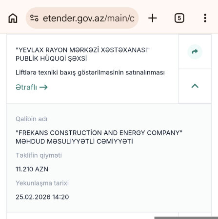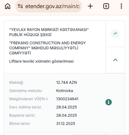 Xatırladaq ki, 28.04.2025-ci il tarixində sözügedən xəstəxana eyni şirkətlə dəyəri 12.744 AZN olan eyni satınalınmanı həyata keçirib.