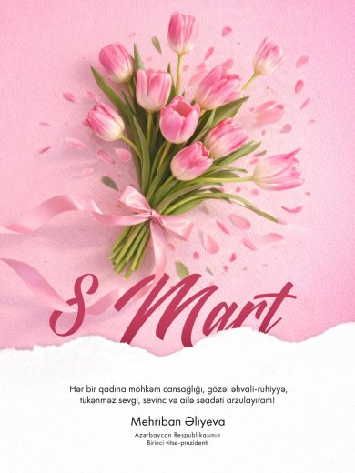“Hər bir qadına möhkəm cansağlığı, gözəl əhvali-ruhiyyə, tükənməz sevgi, sevinc və ailə səadəti arzulayıram!”, - paylaşımda qeyd edilib.