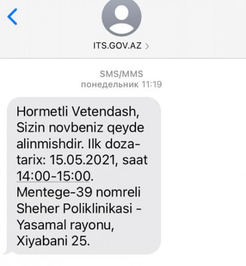 Koronavirus əleyhinə vaksinasiya üçün randevu.its.gov.az saytında qeydiyyatdan keçən jurnalist poliklinikaya yaxınlaşsa da, peyvənd oluna bilməyib. Mediatv.az xəbər verir ki, bu barədə jurnalist Kamran Mahmudov feysbuk hesabında yazıb. O qeyd edib ki, peyvəndlə bağlı saytda 15 may, saat 14:00-15:00 üçün 39 saylı şəhər poliklinikasını seçib: