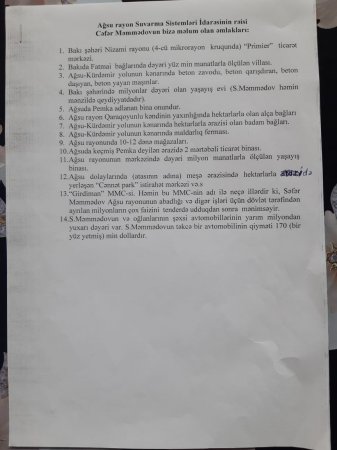 11. Ağsu rayonunun mərkəzində dəyəri milyon manatlarla ölçülən yaşayış binası.
