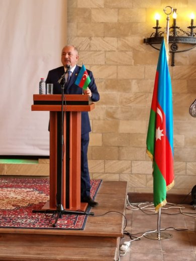 Tədbiri giriş sözü ilə açan Əziz Əzizov bildirmişdir ki, ötən il sentyabrın 27-dən başlayan, işğal altındakı ərazilərimizin azad edilməsi ilə nətəcələnən Vətən müharibəsi tariximizin ən parlaq səhifəsinə çevrilib. 44 günlük Vətən müharibəsi Ali Baş Komandanın, Azərbaycan Ordusunun, xalqımızın zəfəri ilə başa çatdı. Haqq savaşımız Azərbaycan tarixinə qızıl hərflərlə əbədi yazıldı. Bu qələbəni Ali Baş Komandanın qətiyyəti, siyasi iradəsi, müzəffər Ordumuzun şücaəti, qəhrəmanlığı, qorxmaz, cəsur əsgərlərimizin canı, müqəddəs, ölməz şəhidlərimizin qanı, xalqımızın birliyi hesabına qazandıq.