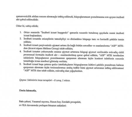 Mediatv.az Oxu.az-a istinadən xəbər verir ki, söhbət paytaxtın Yasamal rayonu, Həsən bəy Zərdabi prospekti 92 A ünvanında yerləşən “ASP” MTK (ticarət nişanı “Melissa Group”) yaşayış kompleksindən gedir.