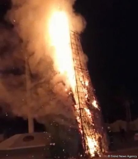 İcra Hakimiyyətinin yaxınlığındakı Yeni il ağacı yandı - FOTO