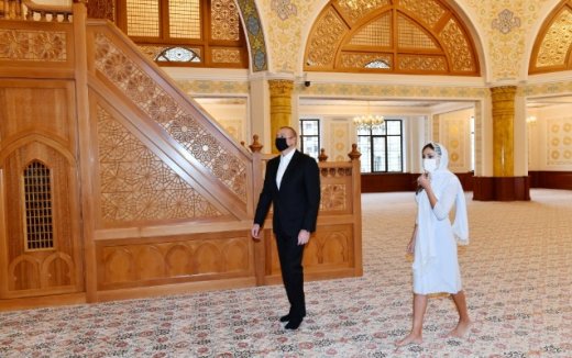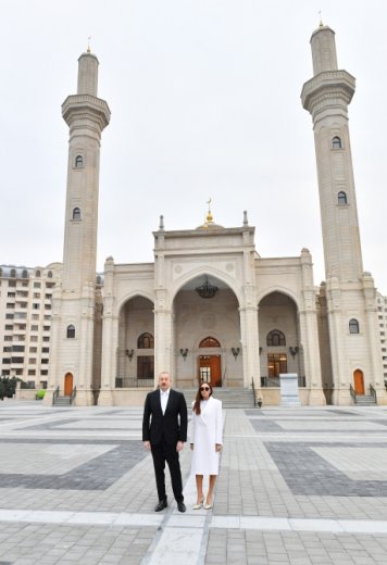 Azərbaycan Prezidenti İlham Əliyev və birinci xanım Mehriban Əliyeva Bakının Suraxanı rayonunun Yeni Günəşli qəsəbəsində “Xanım Fatimeyi Zəhra” məscidinin yeni binasında yaradılan şəraitlə tanış olublar.