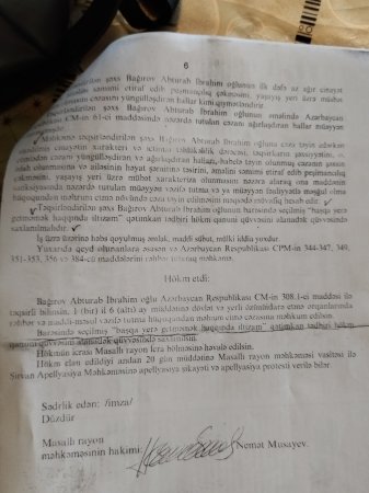 - Dövlət meşə torpaqların satdığı üçün, 2013-cü ildə əli qandallı Masallı Məhkəməsinə gətirilən və s;