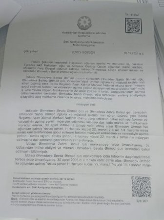 -Etdiyi nöqsanlara görə, 2021-ci ilin noyabr ayı ETSN-nin audit qrupu tərəfindən şiddətli töhmət alan;