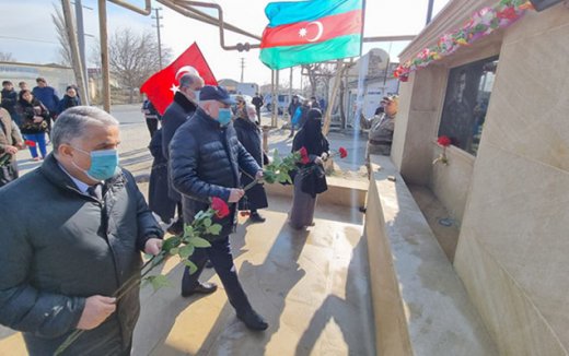 Şəhidin bulaq-abidə kompleksinin və məzarının önünə gül dəstələri düzülərək ruhuna dualar oxunub, əziz xatirəsi ehtiramla yad edilib.