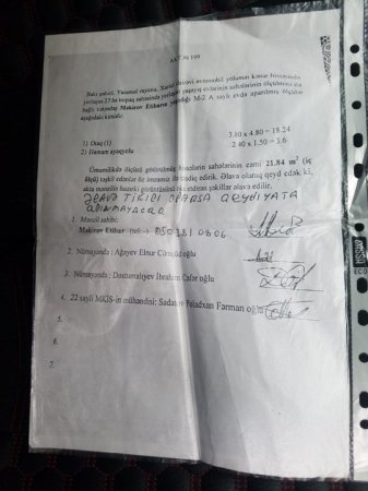 Artıq uşaqlarım böyüyüb. İmkansızlıq üzündən qohum evində yaşayırlar. İndi özümə şərait qurmaq istəyirdim ki, “Kristal Abşeron” şirkəti Qanlıgöl ərazisində yaşayan sakinlərlə görüşüb ərazinin onlara verildiyini bildirdi. Şirkət sakinlərlə ayrı-ayrılıqda danışıb onların çoxunu razı salaraq mənzillərindən köçürməyə başlayıb. Mənim mənzilimi isə saxlayıblar axıra. Çünki 4 sota yaxın ərazisi, imkansızlıq üzündən özünə dəbdəbəli şərait qura bilməyən müharibə veteranının birotaqlı mənzilini şirkət ev kimi qəbul etmək istəmir. Razılaşan qonşuların hasarlarını söküb evimin hər tərəfini zibilliyə çevirəndən, su sayğacımı sındırıb atandan, evin şüşələrini sındırandan, həyətimdəki 20-dən çox ağacı kökündən çıxarandan sonra məni şirkətə dəvət etdilər. İlk görüşümüzdə şirkətin əməkdaşı Şahvələd müəllimlə danışdım, mənim evimin və sanitar qovşağımın taxtadan tikildiyini, ona görə də mənə heç bir mənzil düşmədiyini bildirdi. Mənzilimin içərisinin guya 15 kvadrat metr ərazisi olduğu üçün ümumilikdə 1 500 (min beş yüz) manat pul təklif etdi (kvadratmetrinə 100 manat-?!) və onun da iki qatının– 3000 manatın pul şəklində veriləcəyini bildirdi. (Halbuki mənzilin ölçülməsi zamanı mənə verilən aktda evin və sanitar qovşağın iç ölçülərinin ümumilikdə 21.84 kvadrat metr olduğu yazılıb). Şahvələd müəllim pulu götürməyə razılaşmasam məni Yasamal Rayon İcra Hakimiyyəti ilə hədələdi. Bildirdi ki, “Bakı Şəhər İcra Hakimiyyəti ərazini bizim şirkətə ayırıb. Rayon İcra Hakimiyyətinə də tapşırılıb ki, ərazini boşaldıb bizə təhvil versin”–dedi. Hazırda yataqxanada yaşadığımı bildirdim və son ümidi olan mənzilimi heç kəsə verməyəcəyimi, yalnız mənzil müqabilində şirkətlə razılaşacağımı söylədim. Sonda Şahvələd müəllim rəhbərliklə bizim təklifimizi müzakirə edib nəticəsini 1-2 günə bildirməyə söz verdi.