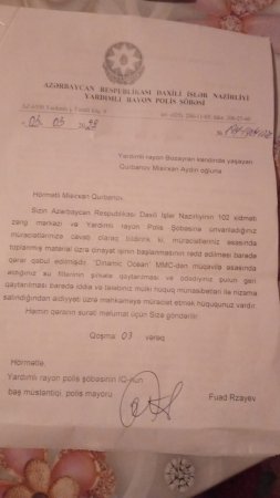 ""Dinamik-okean" şirkəti adı ilə mənə 1980 manata sutəmizləyici aparat satıb məni aldadıblar. Rayonda da bir qorxu yayıblar. Aparatın süzdüyü su acılıq yaradır, eləcə də qiyməti xeyli baha şəkildə mənə sırınıb. Məsələ mülkidir deyib, işimə polis də baxmır".Mediatv.az Demokratik.Az-a istinadla bildirir ki, bu sözləri Yardımlı sakini Qurbanov Misirxan Aydın oğlu səsləndirir.