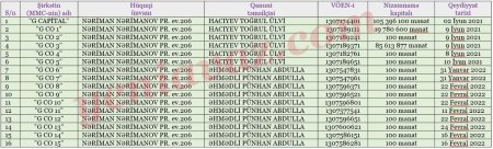 Nəriman Nərimanov pr. ev 206 ünvanında qeydiyyata alınan “G Capital” və “G CO” adı ilə başlayan şirkətlərin siyahısı: