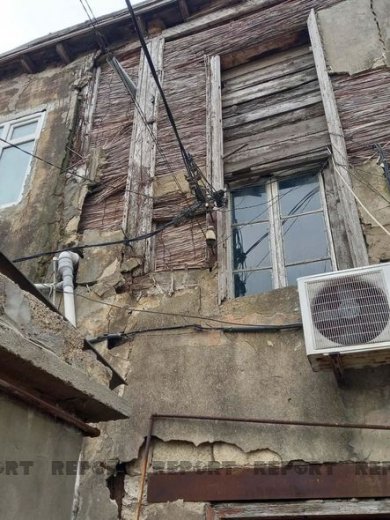 Belə ki, binanın bir hissəsi uçub, daşlar və qamışlar yerə tökülüb. Hadisə nəticəsində xəsarət alan olmayıb.