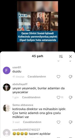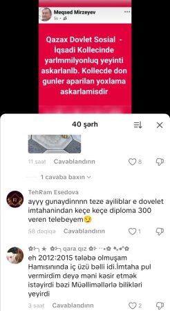 Digər istifadəçilər də müəllimlərin pul aldığı, lakin dərs keçmədiyi barədə iddialarını davam etdirirlər. Sosial şəbəkələrdəki bu müzakirələr kollecdə şəffaf araşdırmanın aparılması tələblərini gücləndirib.