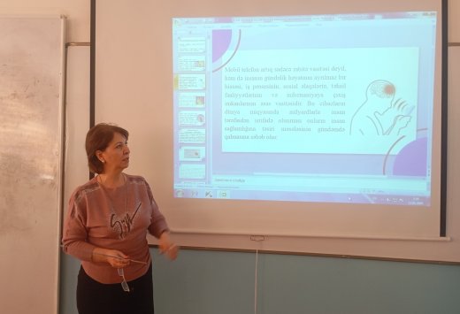 Daha sonra kafedranın attestatsız dosenti S.A.Tağıyeva “Mobil telefonlar və elektromaqnit şüalanma: sağlamlıq riskləri və müasir tədqiqatlar” mövzusunda elmi məruzə ilə çıxış etmişdir. Məruzədə müasir informasiya-kommunikasiya texnologiyalarının sürətli inkişafı fonunda elektromaqnit şüalanmanın insan orqanizminə mümkün təsirləri, beynəlxalq tədqiqatların nəticələri və təhlükəsizlik normaları təhlil edilmişdir. Mövzunun aktuallığı mobil telefonlardan gündəlik və uzunmüddətli istifadənin artması, xüsusilə uşaqlar və gənclər arasında potensial sağlamlıq risklərinin elmi əsaslarla öyrənilməsinin zəruriliyi ilə əlaqələndirilmişdir.